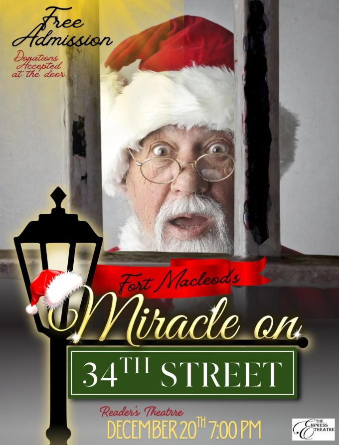 A real Christmas classic, Miracle of 34th Street opens with one of New York’s most prolific department stores on the brink of collapse, with their only hope of survival being their upcoming Christmas season. When the Santa they’ve hired quits at the last minute, they’re left with a kind bearded gentleman who is convinced he’s the real deal and will the day. However, when he is arrested, the fate of Christmas falls into the hands of six-year-old Susan who must restore the world’s belief in Santa Claus. Tickets are Free (Donations Welcomed)
